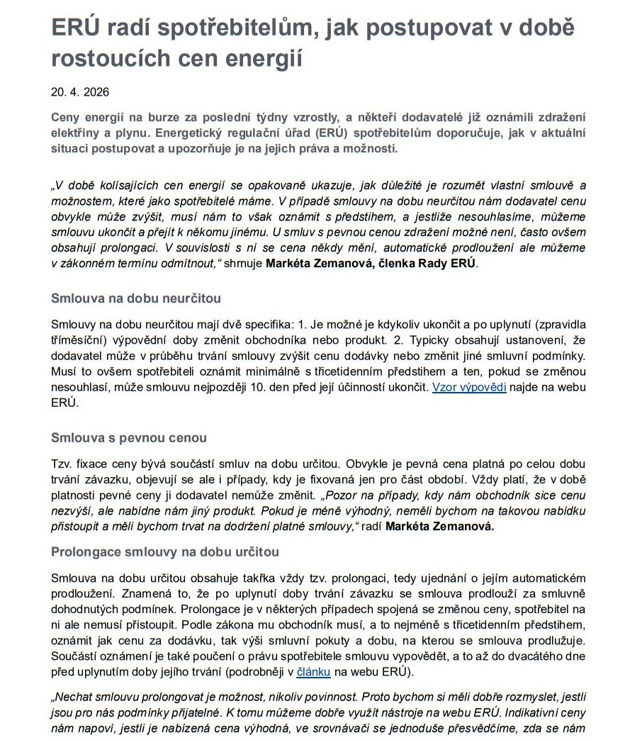 AKTUALITY: ERÚ radí spotřebitelům, jak postupovat v době rostoucích cen energií