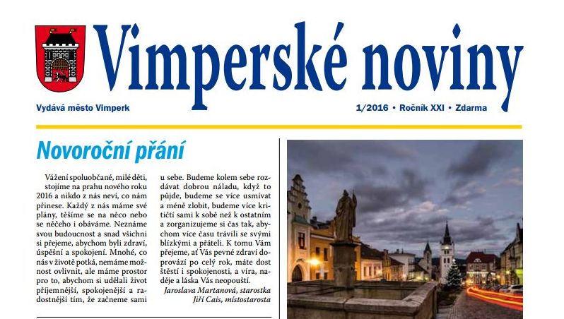Domů PŘEČTĚTE SI U NÁS PŘEČTĚTE SI U NÁS: Než dostanete do schránky. Lednové Vimperské noviny, měsíčník...