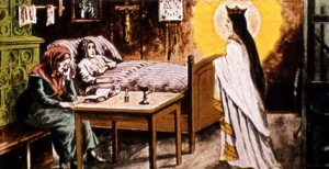 „Najednou bylo v místnosti světlo, jasněji než za dne. Závěs u postele byl rozhrnut. Polekala jsem se. Před mou postelí stála postava zářící bílým světlem, se žlutou korunou na hlavě. Okamžitě jsem si pomyslela, že je to Matka Boží. Sepjala jsem ruce a začala jsem se modlit. Následně jsem slyšela hlas, neobvyklý hlas to byl, jiný, než jakým mluví lidé: »Mein Kind von jetzt an heilt‘s.« (Mé dítě, od nynějška se uzdravuješ.) A v tom okamžiku postava zmizela a já už necítila žádnou bolest.“