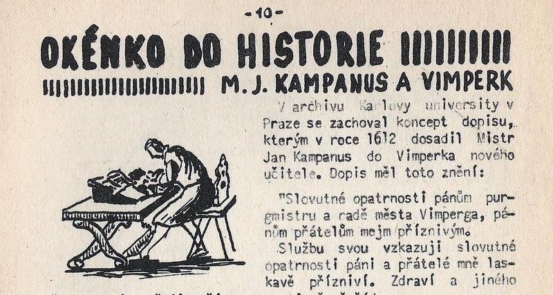 V archivu Karlovy univerzity v Praze se zachoval koncept dopisu, kterým v roce 1612 dosadil Mistr Jan Kampanus do Vimperka nového učitele.