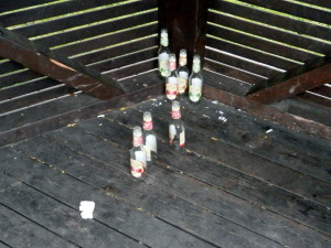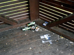 DOBRÉ RÁNO: Noční mejdan v altánu u Volyňky skončil, zůstal binec a baterie prázdných flašek