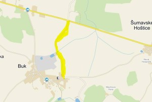 V aleji pod Bukem pod Boubínem (na mapě vyznačena žlutou barvou) jsou po sobotní bouřce polámané stromy. Silnice je pro veškerý provoz uzavřena.