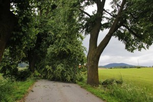 BUK POD BOUBÍNEM: Vítr při bouřce polámat stromy v aleji pod obcí. Silnice je proto dočasně uzavřena