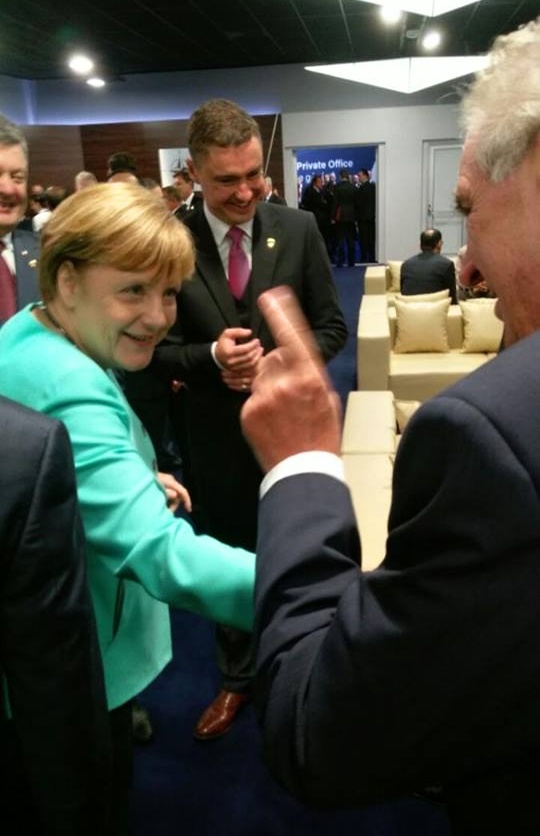 Český prezident Miloš Zeman se v pátek 8. července na summitu NATO v Polsku pozdravil s německou kancléřkou Angelou Merkelovou.