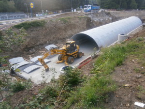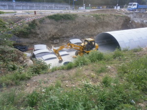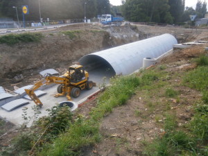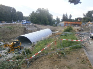 Domů Archiv: VIMPERK OKRUŽNÍ KŘIŽOVATKA: Stavbaři dokončují tubus pro Pravětínský potok, poté budou prostor zasypávat