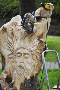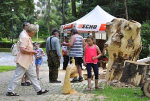 V městském parku ve Vimperku pokračovalo druhým dnem 16. setkání dřevosochařů. Čtyřem mistrům svého oboru jde práce od ruky, a tak už můžeme tušit, co ve finále vytvoří.