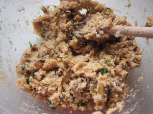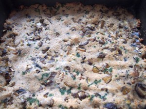 Hříbky nakrájíme na kostičky a dáme spolu s máslem a petrželkou do rendlíku. Chvilku dusíme, dokud nejsou houby měkké. Necháme vychladit. Potom osolíme, opepříme, přidáme vejce, strouhanku a sníh. Směs dáme do vymazaného malého pekáčku a pečeme při 180. st asi 10 minut. Krájíme na kostičky a dáme do polévky.