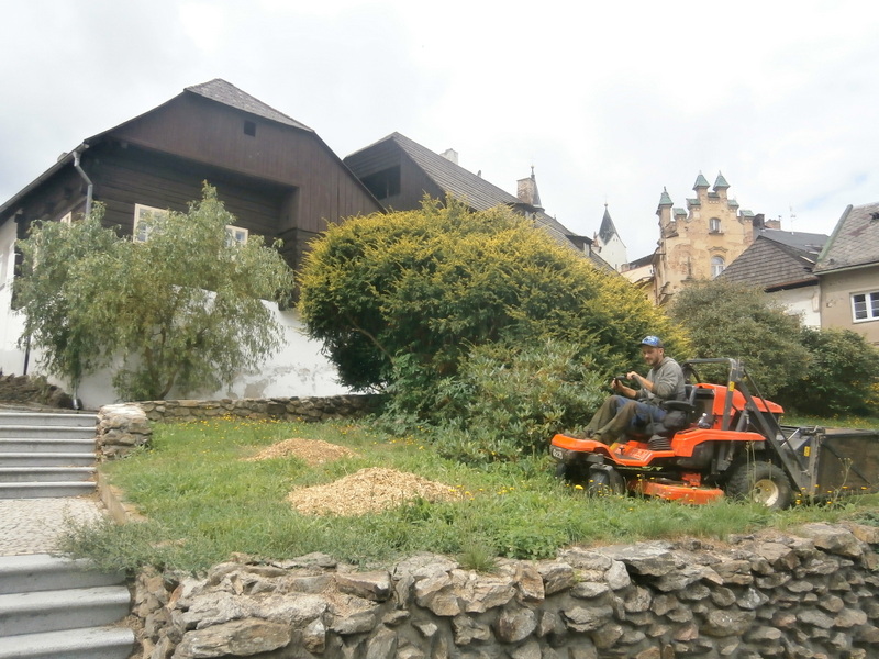 OBRAZEM: Kdepak sekáč s kosou. Dnes si s trávou poradí technika. I na terasách v Inocencově ulici