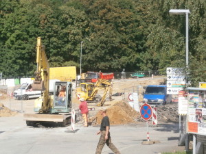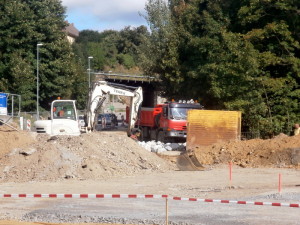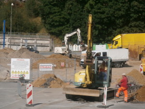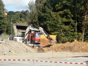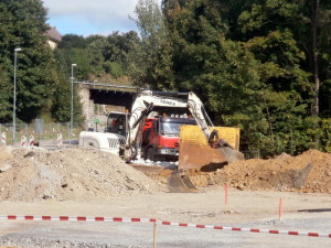VIMPERK – 23. srpna: Na staveništi okružní křižovatky u autobusového nádraží ve Vimperku jsme dnes zastihli dělníky a techniku v provozu ještě v půl páté odpoledne. To nebývá pravidlem.