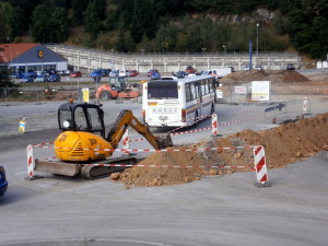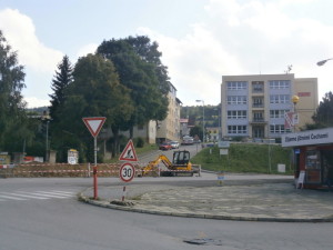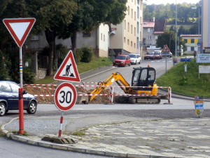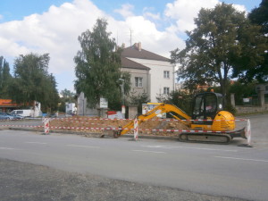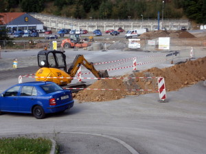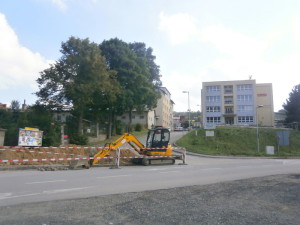 Na staveništi okružní křižovatky u autobusového nádraží ve Vimperku provedli stavbaři v úterý 30. srpna další nový výkop. Tentokrát zasahuje do křížení ulic Nádražní a Nerudovy. Řidiči, místo je zúžené, jezděte opatrně.