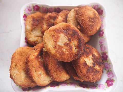 Brambory nastrouháme, přidáme ostatní suroviny a vypracujeme těsto. Tvoříme karbanátky, které obalíme v trojobalu jako řízky. Smažíme na sádle nebo tuku.