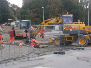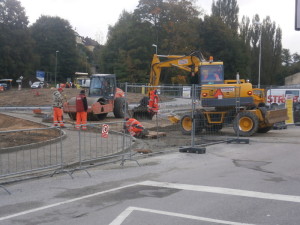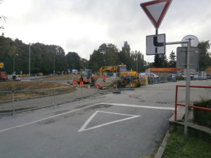 Vimperk – stavba okružní křižovatky u autobusového nádraží, středa 5. října.