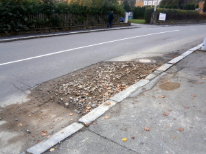 ULICE 1. MÁJE OBRAZEM: Zasypaná díra a další šrámy v dosahu několika metrů. Oprava? Zítra bude pozdě