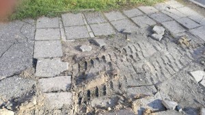 Už tak se rozpadající chodník v Čelakovského ulici ve Vimperku dnes, tedy v úterý 1. listopadu, neznámý řidič se svým nebo mu svěřeným autem ještě více zmasakroval. Náš čtenář František Hop doprovodil své snímky z místa činu textem: Tak to “naše hovado” bylo dnes mezi 10. -14. hodinou zase u nás v ulici Čelakovského.