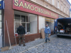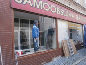 VÍKEND V PRACOVNÍM: Zasklívali výlohu rozbitou v sobotu výtržníkem ve vimperské Rožmberské ulici
