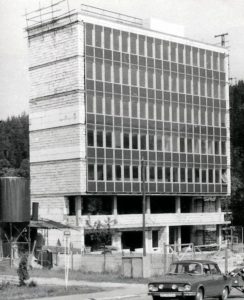 Už přes tři desetiletí stojí na křižovatce, které ve Vimperku říkáme Fišerka, tyto dvě spojené budovy. Do provozu byly uvedeny v květnu 1983 jako sídlo ústředí Spotřebního družstva Jednota a obchodní centrum s velkoprodejnami potravin, spotřebního zboží a bufetem. V pozdějších letech, kdy se úřednický aparát Jednoty snížil, se do uvolněných prostor nastěhovaly různé finanční instituce. Na archivních snímcích vidíte průběh výstavby v jarních měsících roku 1982.